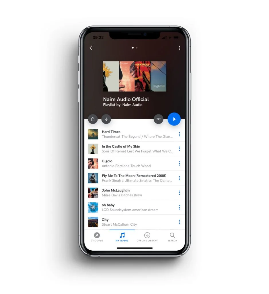 iPhone avec la Playlist Naim Audio sur Qobuz