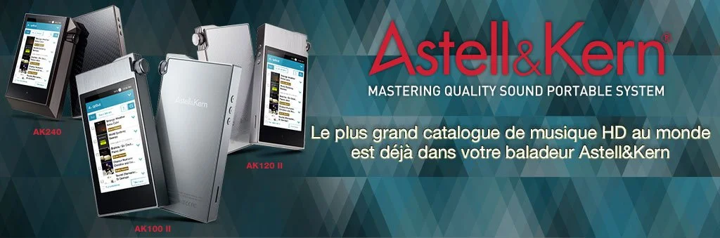 Fabricant de baladeurs numériques audiophiles, Astell&Kern est la marque dédiée Audio High-End du fabricant coréen Iriver. Leur gamme de produits est entièrement conçue pour retransmettre un signal numérique dans une définition sonore de qualité . Vrais bijoux technologiques, les baladeurs AK100II, AK200II et AK240 embarquent 2 convertisseurs Cirrus Logic et décodent presque tous les formats audios ( FLAC 24bits/192kHz , DSD 5,6 MhZ). Vous pouvez également les utiliser comme DAC et disposer d'une mémoire allant jusqu'à 192Go ( 64Go en interne + extension microSD 128Go).